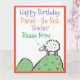 Happy Birthday to a Teacher. Funny cartoon of a sheep on the top of a hill. The sheep says "Best Baaa None". Add a message from the sender.
