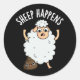 Sheep Happens Funny Poop Pun Dark BG Classic Round Sticker