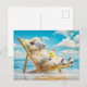 Humourous illustration of a sheep napping in a deck chair with a cocktail by the sea, drawn in a nostalgic storybook style.