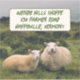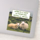 Custom large sticker with sheep in a field design. Printed, dark green text template can be used for a shop name and address, business advertising, or personal fun. Choose a size.