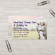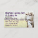 Business cards with a farming theme. A sheep and little lamb image is at the right side of the cards with all text aligned to the left. Larger printed text, in dark purple, can be used for the farm name, business name, or personal name. Smaller text can be used for services, location, and contact information. Background images are of a farm and sheep.