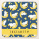 Sheep Pattern, Sleeping Sheep, Moon, Your Name Square Paper Coaster