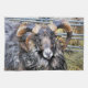 A photographic design of a beautiful ram sheep with magnificent horns.