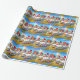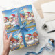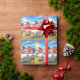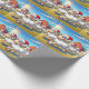 Sheep With Santa Hats Running By Barn Christmas Wrapping Paper