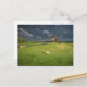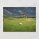 Sheep with windmills under dark clouds postcard