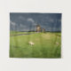 Sheep with windmills under dark clouds tapestry