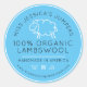 Ideal for homemade knitted items and hand-spun wool. Personalise with your own wool products business name and other product details and own logo or leave the outline sheep provided. Give a professional touch to your good for sale at markets or online. Simple graphic line art in simple white text sheep and garment care logos on a sky blue background. Other colours and designs available and requests are undertaken. Art and design by Sarah Trett for www.mylittleeden.com on zazzle.