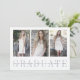 Modern graduation photo party invitation features three of your favourite photos aligned side by side, with "graduate" displayed beneath in elegant light grey lettering. Personalise with your name, school and graduation year on a sheer white stripe overlay. Cards reverse to reveal your graduation party details in matching colours. An elegant and modern choice for 2023 graduates.