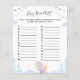 Sheet game "Baby Item ABC" for baby shower Decorated with an adorable unicorn with wings, a garland and a castle.
