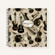 This fun music themed design features a variety of musical instruments on a vintage sheet music, collage background. The trendy black and gold colour palette makes an eye-catching note book with a gradient label to hold your personalised text. The instruments featured are: acoustic and electric guitar, saxophone, clarinet, trombone, trumpet, French horn, flute, violin, cello, and drums. Add your name or other text using the provided template. Search ID481 to see other colour choices and products with this pattern.