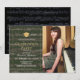 This chic and classic drive-by/drive-thru graduation party invitation features your photo and a dark green background with a graduation cap in faux gold glitter and a sheet music. The reverse side features a black background with a sheet music. Personalise it for your needs. You can find matching products at my store.