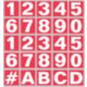 Numbers from 0 to 9. Individual numbers as stickers on a sheet. Red and white.
