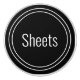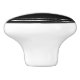 This black knob has white display text. You can edit it to show what's inside the drawer or cabinet. (Shown: Sheets) Two white circles form a border for the text.