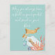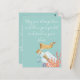 Pretty beach theme postcard with customisable "may you always have a shell in your pocket and sand in your shoes" text in modern script white font, blue background and watercolor message in a bottle sea life graphic