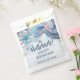 Beach theme birthday thank you favour bags features watercolor starfish seashells with a "let's shellabrate" caption and two lines of text that can be personalised. Art by KL Stock