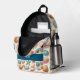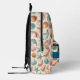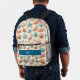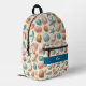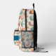 Sea shells and sea stars in blue and tan, against a light sandy background creates the perfect beach-themed backpack. Perfect for anyone who loves the ocean and beach.
