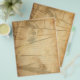 Blank, decorated binder or scrapbook paper with seashells in sand design. Three shells, inhabited by hermit crabs, walk in the sand among sea grass in the photo that is superimposed over wrinkled, vintage stained paper. Distressed blue lines are provided on the lower half of the sheet. The same design is printed on the back of 8.5 x 11 inch matte flyer paper. Punch holes and add to a binder, or use in a vacation or coastal themed scrapbook, or use it to write a letter.