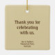 Square ceramic ornament with an image of a variety of seashells on a sandy beach and a white transparent writing space. Shells include a Florida auger, conch, two pink murex, cockle and white sea star. The back is tan with optional text. See the entire Shipwreck Ornament collection in the SPECIAL TOUCHES | Party Favours section.