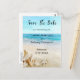 Join us for a destination wedding. Send Save the Date postcards to let your guests know to block off the date for your wedding in the upcoming future. There's a bright beach scene with shells on the sand and ocean waves crashing on the shore. . You can personalise with your information easily.