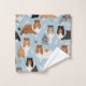 Cute Shetland Sheepdog dogs sit and stand and rollover with sable, tri-colour, merle and white coats with scattered dog bones and pawprints pattern.