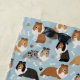 Cute Shetland Sheepdog dogs sit and stand and rollover with sable, tri-colour, merle and white coats with scattered dog bones and pawprints pattern.