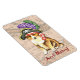 I love this magnet. It’s colorful and bright plus it’s my fav pup now hanging on my fridge. Yay!! Clear quality color. The pic turned out really great. I will buy more for Xmas gifts this year.
