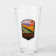 A vintage travel badge design of Skyline Drive at the Shenandoah National Park with the Blue Ridge Mountains during fall in Virginia, United States.