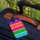 Hot pink, bright purple, lime green, orange and aqua blue designed luggage tag.