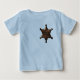 Cute baby boy's bodysuit with graphics of a bronze looking old west sheriff's star badge. Personalise the brown text, on the back of the bodysuit, to read what you want. Cute baby boy's shower gift idea.