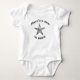 Baby's creeper with a sheriff badge and the words "there's a new sheriff in town". Image is in black and grey.