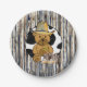 Sheriff Teddy Bear and Star Badge faux wood birthday party or baby shower small cake paper plates.