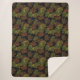 This warm and cosy Sherpa blanket is shown in a lovely fall autumn leaves print on a black colour background.