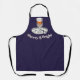 An amusing Christmas apron with caption 'Sherry & Bright' and picture of a glass of sherry, on a dark blue background. An ideal gift for wine lovers, sure to add a touch of 'glass' to the kitchen.
