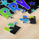 This exciting and lively birthday-themed jigsaw puzzle design has the message "HAPPY BIRTHDAY, SHERRY" with the characters having a colourful rainbow spectrum inspired gradient pattern, along with a fun stars background pattern. A vibrant puzzle like this might be used to send a birthday greeting message to somebody named Sherry. [~Z0000468]