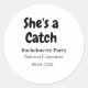 She's a catch bachelorette party name date simple classic round sticker