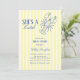 An elegant coastal bridal shower invitation featuring butter yellow stripes and refined blue typography. A charming line art lobster adds a whimsical beach touch, while the mix of modern and vintage typefaces creates a timeless yet fresh design. Perfect for celebrating love with seaside sophistication.