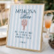 This elegant, downloadable mimosa bar sign features a vintage inspired, red drawn illustration of a lobster on a soft blue striped background.