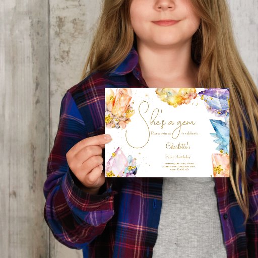 She's a Gem Birthday Crystals Girl's watercolor Paper Plate