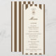 Birthday menu card featuring a hand-drawn coffee martini glass and coffee beans paired with elegant script and serif fonts in which your personalized information is written. The background is brown stripes on a light background. Check out our store for more items from this collection.