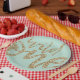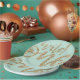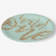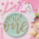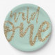 These adorable wild one plates feature gold, sparkle script on a light teal background. These are the perfect first birthday party decor.
