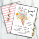 Simple and modern "She's been scooped up" bridal shower invitation. Features a watercolor wildflower bridal bouquet icecream cone in soft pastel colours. All wording can be changed.To make more changes go to Personalise this template. On the bottom you’ll see “Want to customise this design even further? Click on the EDIT using Design tool. From there you can change some of the fonts & some colours, move things around or delete what you need.