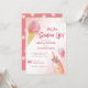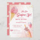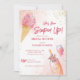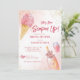 She's been scooped up pink ice cream and pink champagne bottle with champagne glass bridal shower bridal brunch invitation template. Modern casual brush script .