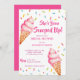 She's been scooped up pink strawberry ice cream and sprinkles bridal shower invitation template.
