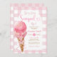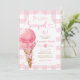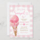 Gingham Pastel She's been Scooped Up Ice Cream Pink Bow Bridal Shower Invitation