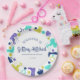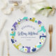 These fun bridal shower paper plates are perfect for women who love horses and horseback riding with equestrian themed graphics and pretty floral accents in shades of navy blue, aqua blue, lime green and periwinkle. They feature the funny "Getting Hitched" slogan and your custom text in purple lettering.