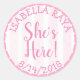 She's Here, New Baby Girl Announcement Classic Round Sticker