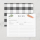 This cute "She's off the market" farmer's market bridal shower recipe cards for the bride-to-be features a white background with vegetables and fruits in watercolor. The reverse side features a white background with black buffalo/gingham check patterns. Personalise for your needs. You can find matching products at my store.