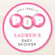 She's Ready To Pop Bubblegum Pink Girl Baby Shower Round Paper Coaster