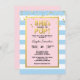 Elegant design with faux gold confetti and pastel blue and white stripes with blush pink background. SHE'S ready to POP! modern yet elegant baby shower theme. Perfect that expecting baby boy or baby girl - gender reveal , neutral, unisex party or baby sprinkle. All text can be edited with font and size. Don't forget to get matching favour stickers!