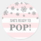 She's Ready to Pop Pink Stripes Silver Snowflakes Classic Round Sticker